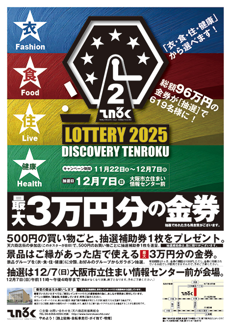 天神橋筋六丁目商店街〒530-041大阪市北区天神橋筋6丁目5番17号TEL:06-6358-0035 FAX:06-6358-0034